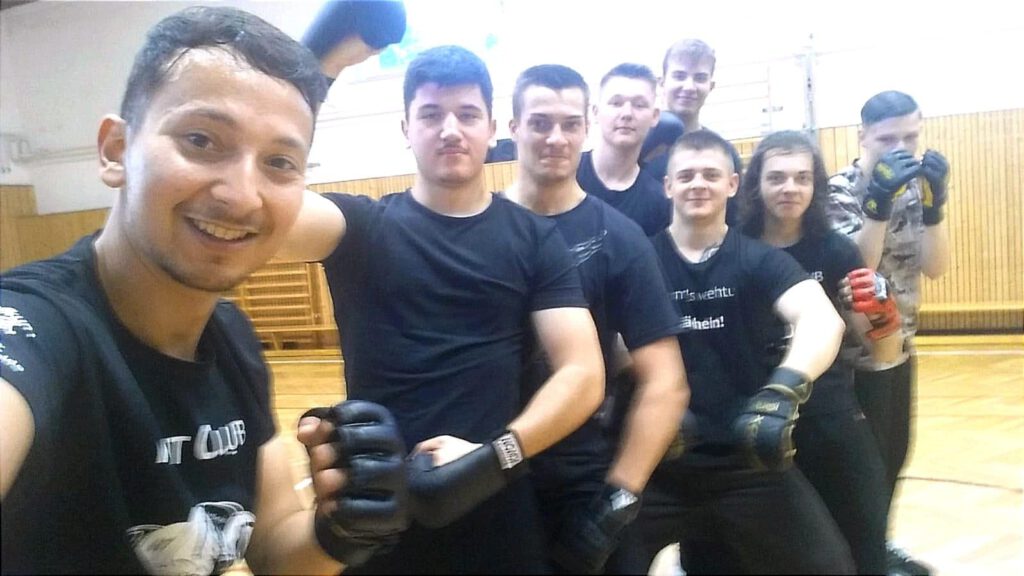 Übe praktische Anwendungen zur Selbstverteidigung sowie regelmäßiges Sparring in Leicht- und Vollkonakt.
